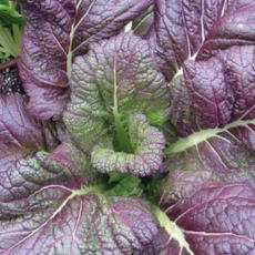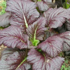 Листья гофрированные, красные, черешки светло-красной окраски. Вкус горчичный, слабоострый.
