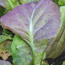 Листовая розетка плотная, некрупная. Листья овальные с зубчатым краем, зеленые с красными прожилками, нежные, маслянистые, слабоострого вкуса.