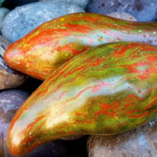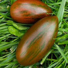Плоды мелкие, сливовидные, с заострённым носиком, окрашены в пёстро-шоколадный цвет. Вес плодов 40–60 грамм.