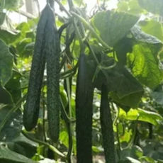 Плоды тонкие, тёмно-зелёные, с тонкой кожицей и нежной сладковатой мякотью, генетически без горечи, длиной до 30 см.