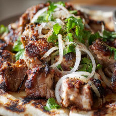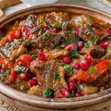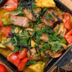 Традиционный рецепт грузинской кухни, в котором свинина томится в остром томатном соусе с большим количеством специй и зелени.