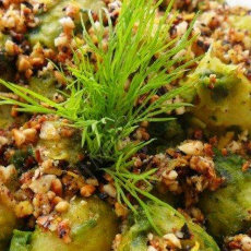 Брюссельская капуста с орехами и кунжутом выделяется на фоне вегетарианских закусок своим аппетитным хрустом, отличным вкусом и ароматом. Орехи добавляют блюду насыщенность, а кунжут — лёгкую пикантность и текстуру.