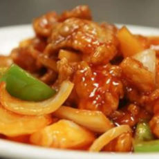 В этом мясном блюде много овощей, а ароматный кисло-сладкий соус делает вкус свинины богаче и насыщенней.