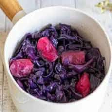 Краснокочанная капуста, тушёная с грибами, обладает неповторимым вкусом и ароматом и может служить прекрасным гарниром к мясу, рыбе, крупам и картофелю, а также употребляться в пищу как самостоятельная закуска.