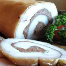 Это сытное и невероятно вкусное блюдо готовится из тонкого сала, мясного фарша, зелени и специй. Оно подходит для праздничного застолья и уютного семейного ужина.
