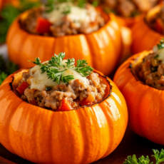 Это сытное, калорийное и очень вкусное блюдо подходит для обеда и ужина. По своему желанию, тыквы можно начинять мясом, овощами, различными крупами, бобовыми и даже грибами.