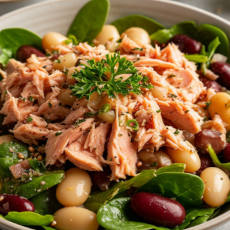 Салат с лососем отличается одновременно питательностью, диетичностью и полезностью. Его можно подавать как самостоятельную закуску на завтрак и ужин и как перекус перед обедом.
