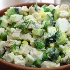 Салат «Леди» выделяется своим лёгким и изысканным вкусом. Огурец и зелень придают кушанью свежесть, а куриное филе и зелёный горошек создают особую нежную текстуру.