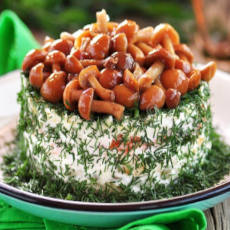 Салат «Грибная поляна» желательно подавать в прозрачной ёмкости, чтобы гости полюбовались живописными слоями ингредиентов. Различные продукты, из которых состоит салат, создают целую палитру вкусов и цветов.