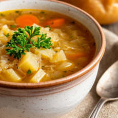 Овощной суп из свежей капусты на курином голени — достаточно простое в приготовлении и наваристое блюдо, которое по достоинству оценят и взрослые, и дети. Суп отличается насыщенным сливочным вкусом и ароматом, будто бы из классической русской печки.