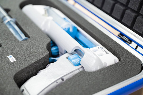 Пистолет удобно использовать в условиях полевого госпиталя либо при чрезвычайных ситуациях, где особенно важна автономность и мобильность. Он удобен в реанимации и хирургии для точного дозирования препаратов либо для «ювелирного» наложения покрытия.