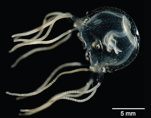 Исследователи из Кильского (Германия) и Копенгагенского (Дания) университетов обратили внимание на кубомедузу Tripedalia cystophora, обитающую в Карибском море. Эти мелкие существа питаются рачками, живущими в мангровых зарослях, из-за чего им приходится маневрировать между мириадом корней и не повреждать о сучья свои нежные тела.