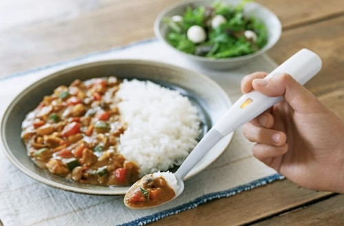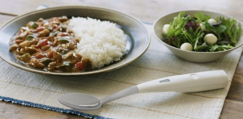 Встречайте электрическую ложку от японской компании Kirin. Гаджет воздействует на молекулы ионов натрия на языке слабым электрическим разрядом, меняя тем самым ощущения от пищи. Так человеку кажется, что он потребляет более соленую пищу, чем есть на самом деле. Производитель говорит о 1,5-кратном увеличении «солености» продуктов, то есть в блюда можно будет добавлять в 1,5 раза меньше соли.