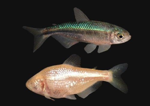 Несмотря на уникальную внешность, слепые пещерные рыбы не являются отдельным видом — их относят к мексиканским тетрам, обитающим в ручьях и реках. Но в отличие от своих подземных родственников, поверхностные особи могут похвастаться блестящей серебристой чешуей и большими круглыми глазами. Однако, генетически, эти существа невероятно похожи и легко скрещиваются.