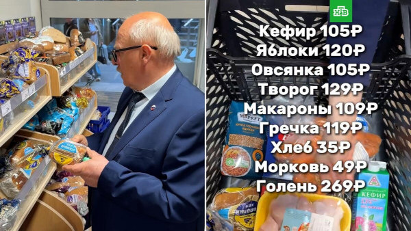 В итоге депутат купил овсянку, кефир, два яблока, творог, макароны, пачку гречки, мытую морковь, лоток куриных голеней и хлеб. Общая стоимость составила корзины 1040 рублей.