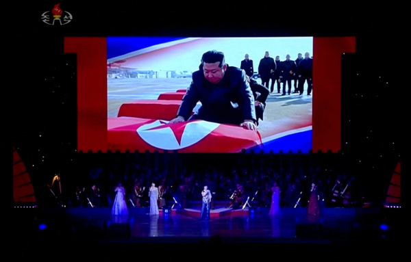 В ходе концерта на сцене на фоне выступающих транслировали фотографии. На одном из кадров Ким Чен Ын кладет государственный флаг на гроб. На фоновых кадрах можно заметить министра иностранных дел КНДР Цой Сон Хи. "Лидер Северной Кореи Ким Чен Ын скорбит над гробом, как предполагается, северокорейского солдата, погибшего в России", - описывает Yonhap одну из подобных фотографий.