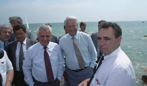 * На фото глава Российской Федерации Борис Ельцин (в центре) и президент Украины Леонид Кравчук (третий справа), Дмитрий Донской/РИА «Новости».
