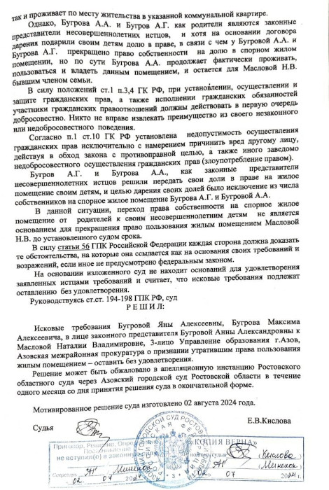 В городе Азов (Ростовская область) детей воина СВО суд выселяет из собственной квартиры. Теперь там будет жить пожилая женщина, поддерживающая ВСУ.