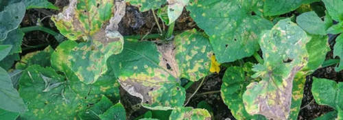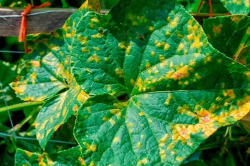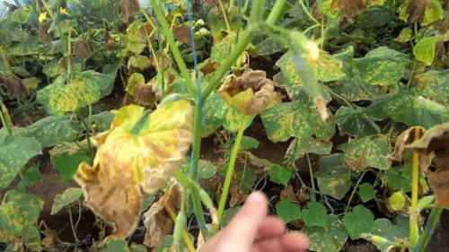 Если листья огурцов покрылись жёлтыми пятнами, то это может свидетельствовать о том, что культура поражена опасным грибковым заболеванием – пероноспорозом. Он чаще всего проявляется во второй половине лета и способен свести на нет все труды дачников. Развивается пероноспороз стремительно. Он угнетает растения и снижает урожайность до 70%.