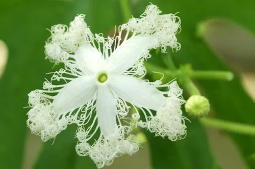 Это однолетнее вьющееся растение из семейства Тыквенные обладает длинным тонким лиановидным стеблем (до 3 - 4 метров) и крупными 3-7 лопастными листьями. В период цветения лиана покрывается мелкими белыми цветами, диаметром 3 — 4 см.