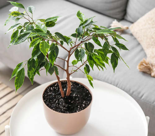 Пересадки, если и проводятся, то редкие — каждые 3 — 4 года. Фикус улучшает качество воздуха и наполняет пространство ощущением спокойствия и уюта. Максимальная высота растения — 50 — 60 см.