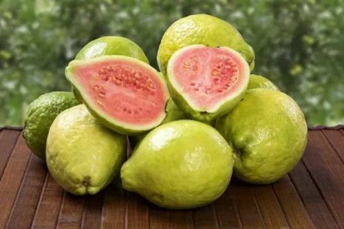 После цветения на растении образуются округлые плоды размером 5-10 см. Мякоть их желто-розовая, по вкусовым качествам похожа на персик, крыжовник и грушу. Спелые плоды сладкие и ароматные, их употребляют как десертное блюдо, а недозрелые плоды гуаявы – кисловатые и вязкие, используются как изюминка в свежих салатах, приправленных солью и специями.