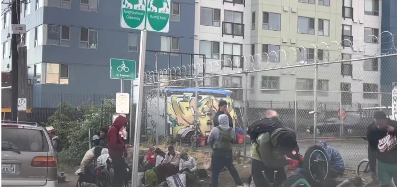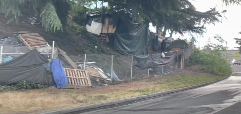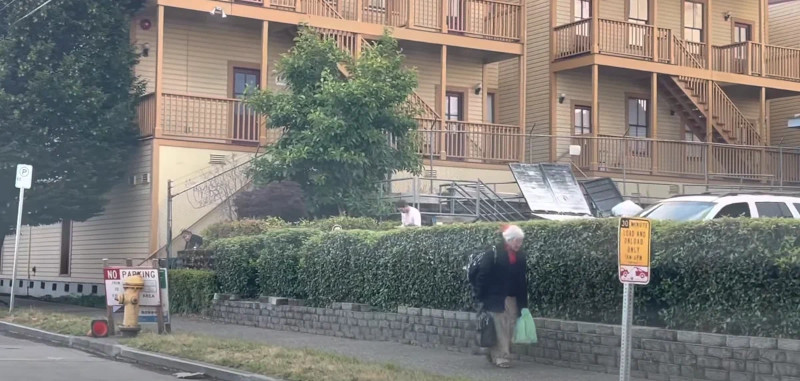 Типичный американский бомж — сити. Такие «городки» вырастают на склонах вдоль автострады и занимают многие мили. Бездомные строят такие хибары из различного строительного мусора: поддонов, кусков брезента и т. п. Стройматериалы бездомные берут на ближайших свалках, в которые превратились улицы Сиэтла.