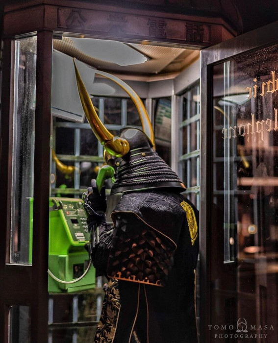 Японский фотограф Ацуси Кобаяси придумал необычный фотопроект о самурае, путешествующем во времени. Его герой, японский воин XV века, попадает в современную Японию. На снимках, сделанных в городе Кокагава, фотограф бережно объединил традиционную красоту Японии и ее современность.